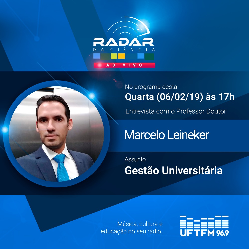 O programa Radar da Ciência volta das férias às 17h desta quarta-feira (06) com uma novidade: pela primeira vez, após quase um ano e meio no ar, a programação será transmitida ao vivo, não só na rádio, mas também no Facebook e também pelo Youtube. "Gestão Universitária" foi o tema escolhido para estrear o programa nas novas plataformas digitais, e o convidado do dia será o diretor do Câmpus de Palmas, Marcelo Leineker Costa. A entrevista será conduzida pelo também professor e âncora do programa, Kleber Abreu.
