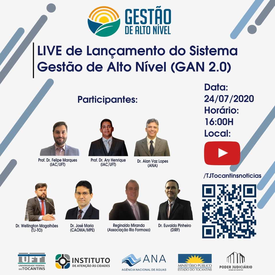 Ocorre nesta sexta-feira (24), às 16h, a live de lançamento do Sistema de Monitoramento Remoto de Recursos Hídricos "Gestão de Alto Nível", versão 2.0 (GAN 2.0). Para assistir, basta acessar o canal do Tribunal de Justiça (TJ/TO), no YouTube.