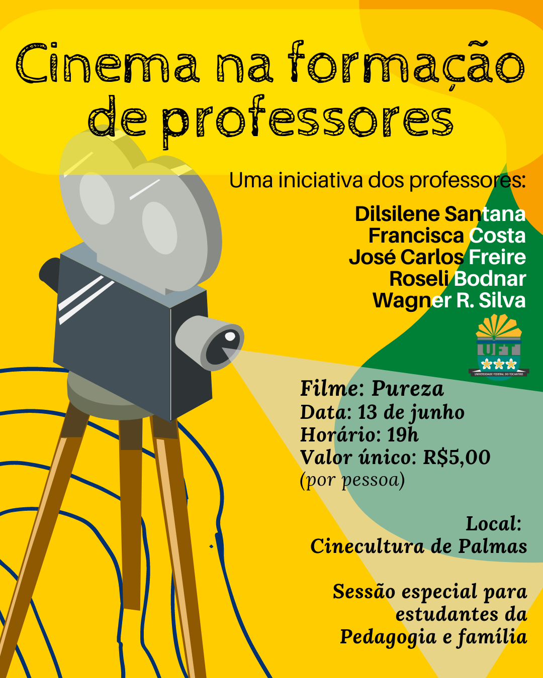 O curso de Pedagogia da UFT, Câmpus de Palmas, participará, na próxima segunda-feira (13), de uma sessão especial no Cinecultura de Palmas, com a exibição do filme “Pureza”. A iniciativa busca evidenciar o cinema na formação de pedagogos.