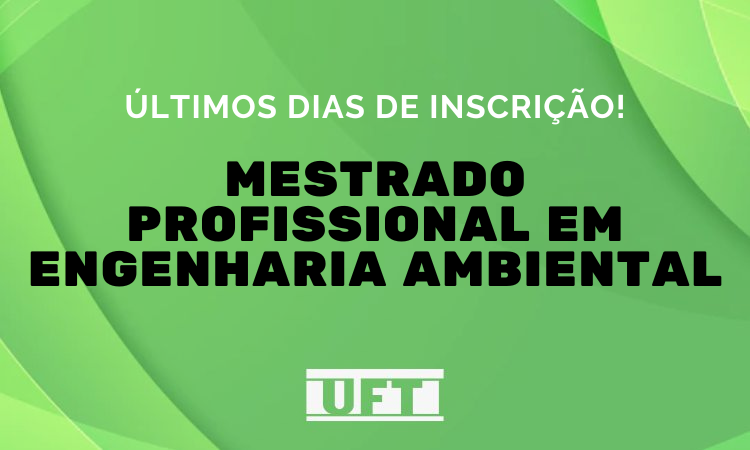 O Programa de Mestrado Profissional em Engenharia Ambiental (PPGEA), da Universidade Federal do Tocantins (UFT), continua com as inscrições abertas para seleção de aluno regular, com ingresso no segundo semestre de 2022.